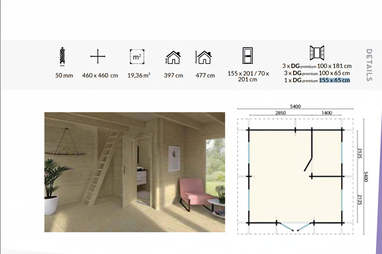 - Extra-Thick 50mm Logs: Superior structural integrity and better natural insulation than standard 28mm or 34mm cabins.