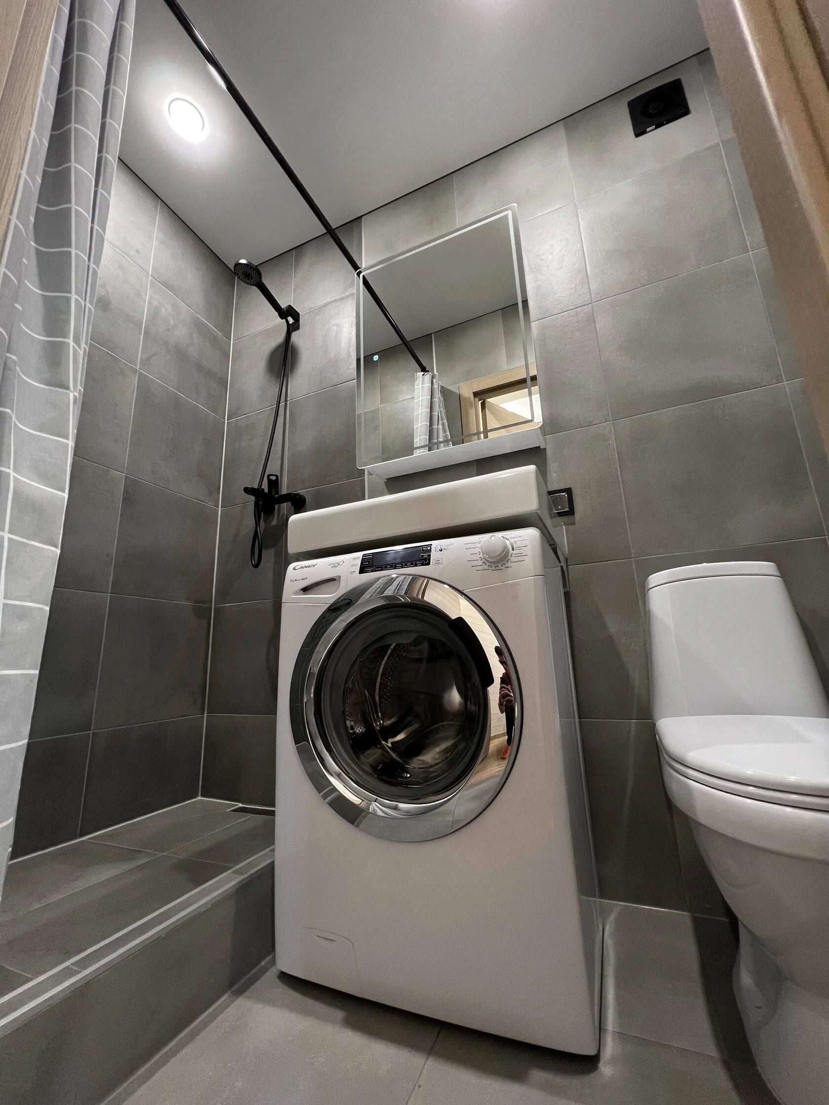 - Washing machine installed in the bathroom – convenient for long-term stays and holiday rentals
