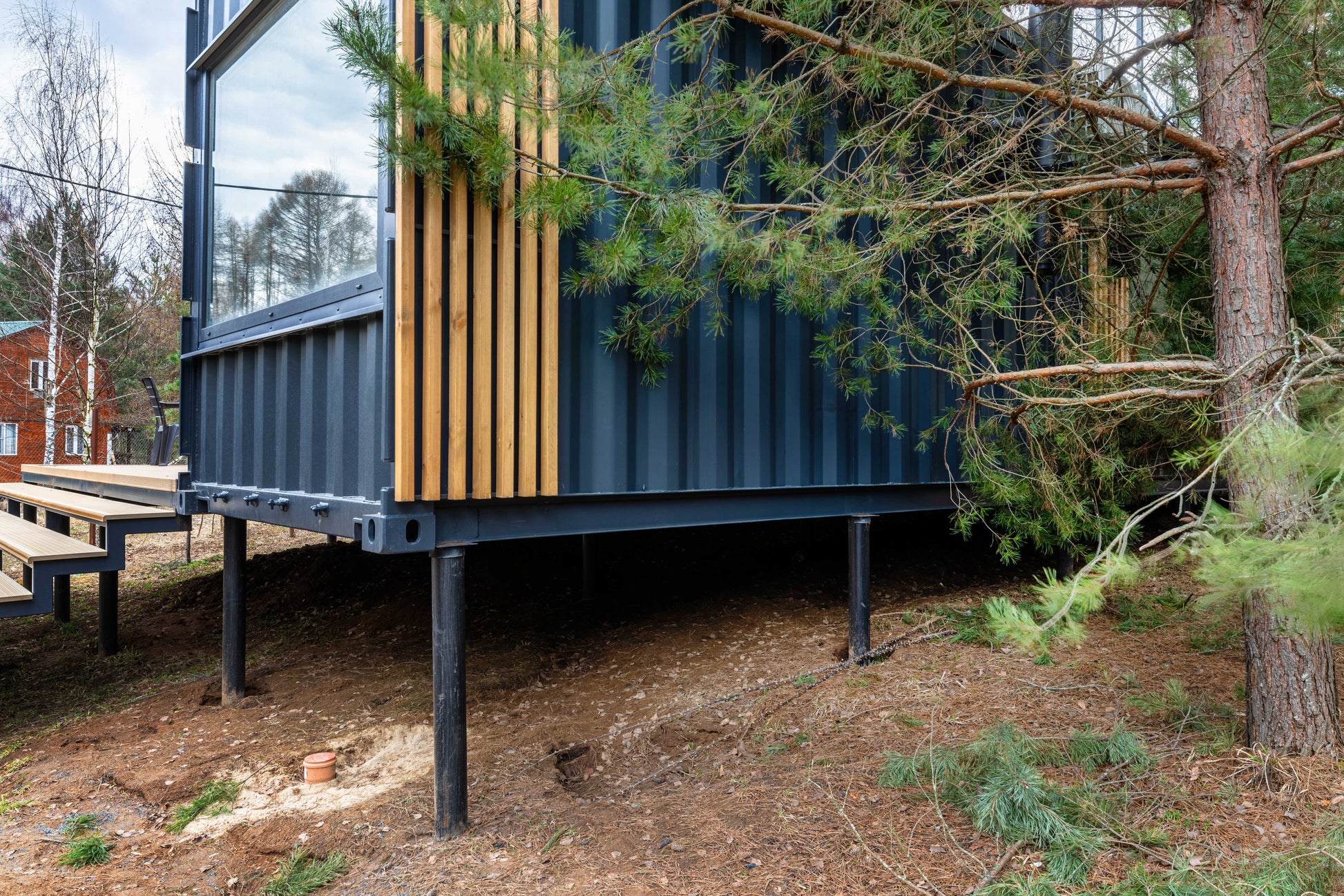 - Timber frame with fire-resistant treatment